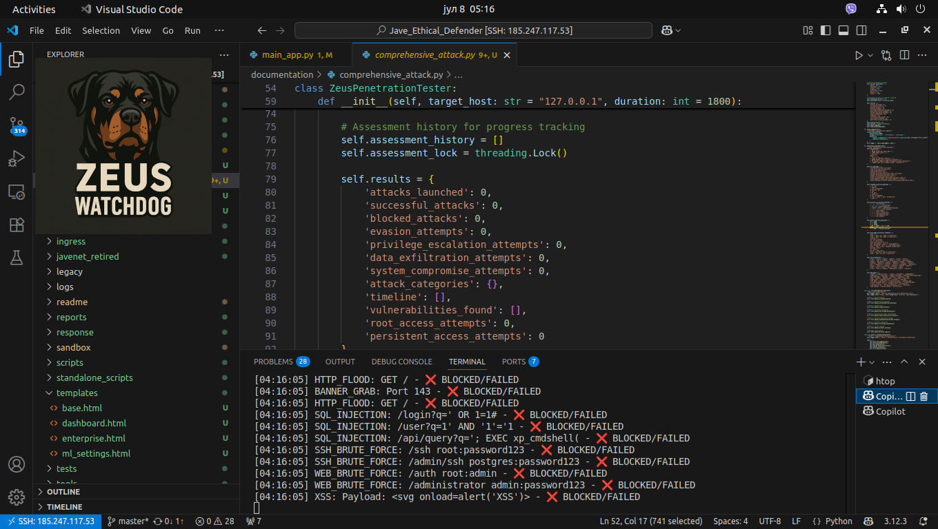 Please note, we are willing to run the attack script in your presence and allow you to briefly view it however we cannot ethically provide software capable of penetrating live servers as to Zeus WatchDog this is nothing but to a normal dedicated/cloud server it is highly dangerous. It goes through many current and next-gen methods in order to compromise Zeus or the Server. I have attached the readme for the attack script so you can see all the methods that Zeus protects against, hint, its pretty much all of them.