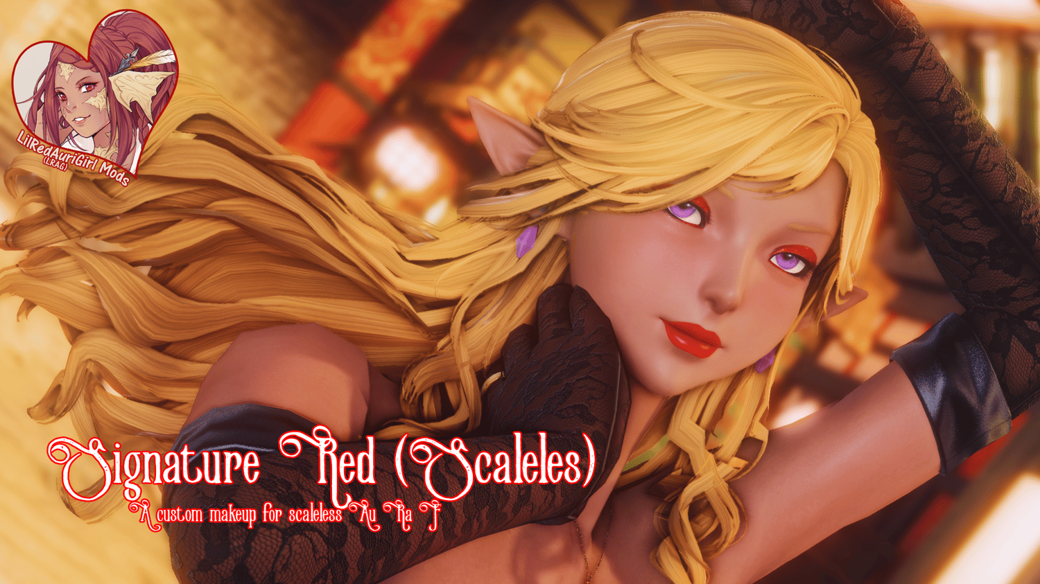 This version is for Scaleless Female Au Ra ONLY. The makeup will appear different depending on the skin tone of your character. A transparent PNG of the makeup is included in the file so you can overlay with your own custom skins, or make minor personal adjustments.