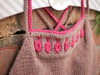 -> Le modèle est expliqué "nu", avec l'ourlet de bas du corps de la version adulte et des finitions en i-Cord, pour une version 100 % tricot. Sans motif, sans perle, sans finition particulière. Pour ajouter froufrous, bretelles particulières, motifs, etc, il vous faudra consulter les variantes afin de les inclure.
