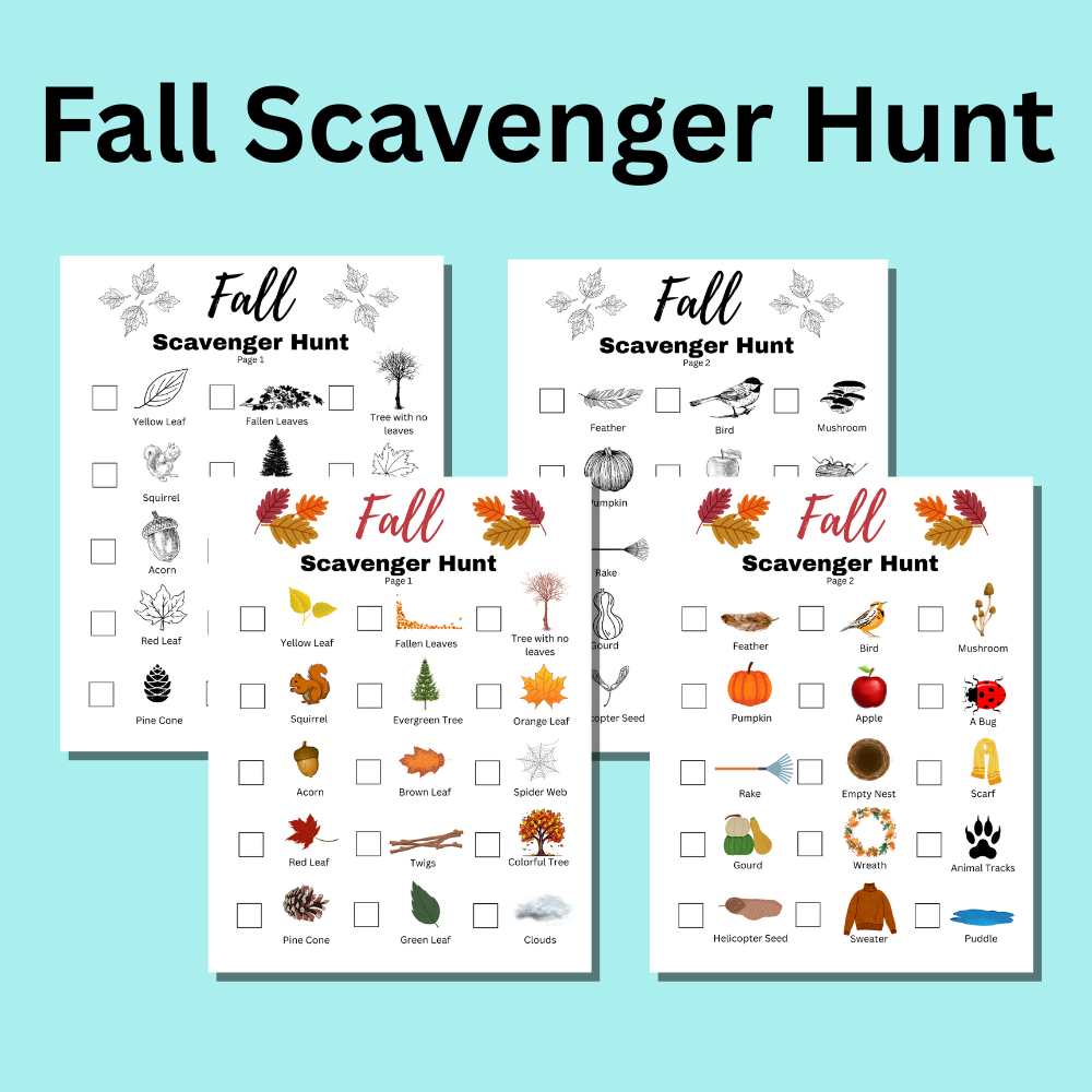 Make your next fall adventure even more fun with this Fall Scavenger Hunt. Included are color and black and white versions for your printing preferences. Laminate and use again and again!