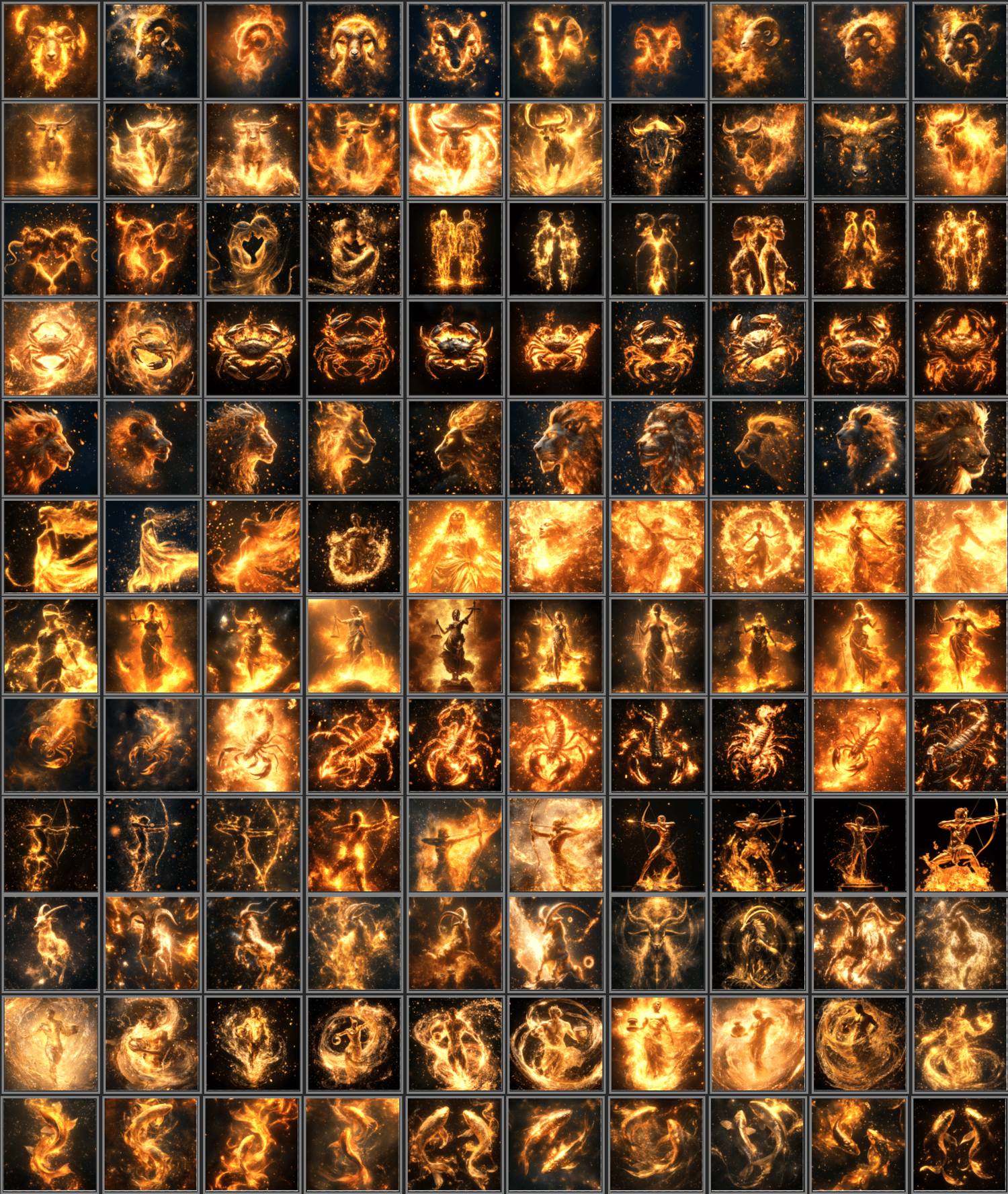 Introducing the Fiery Zodiac Bundle – a stunning collection of 120 captivating images designed to ignite your creativity and passion for the zodiac! This bundle includes 10 vibrant images for each of the 12 zodiac signs, all in high-quality 1080x1080 pixel resolution, perfect for social media, digital art, wallpapers, or personal projects.