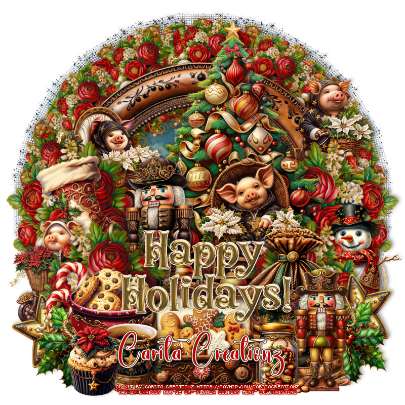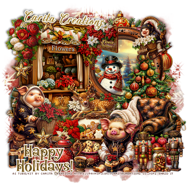 The hardworking Piggy Express delivers flowers for you so you can concentrate on a cozy christmas at home by your fireplace.