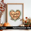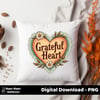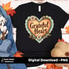 Grateful Heart PNG | 3600x3600 | 300 DPI Transparent Background | Fall Retro Sublimation Design