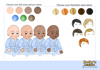 three different skin tones, three eye colours and five hair colours)
