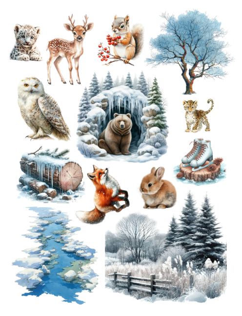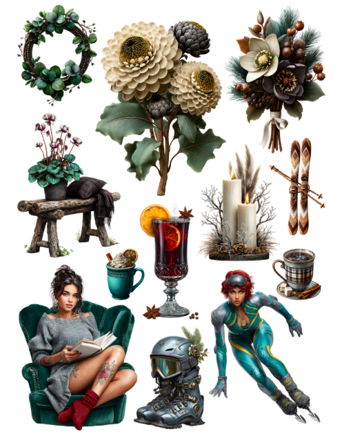 This beautiful book features snowy winter ephemera such as skiers, snowboarders, winter landscapes, forest animals and fashionable winter people. Decorate your planner with these lovely ephemera pieces, it's all the rage!