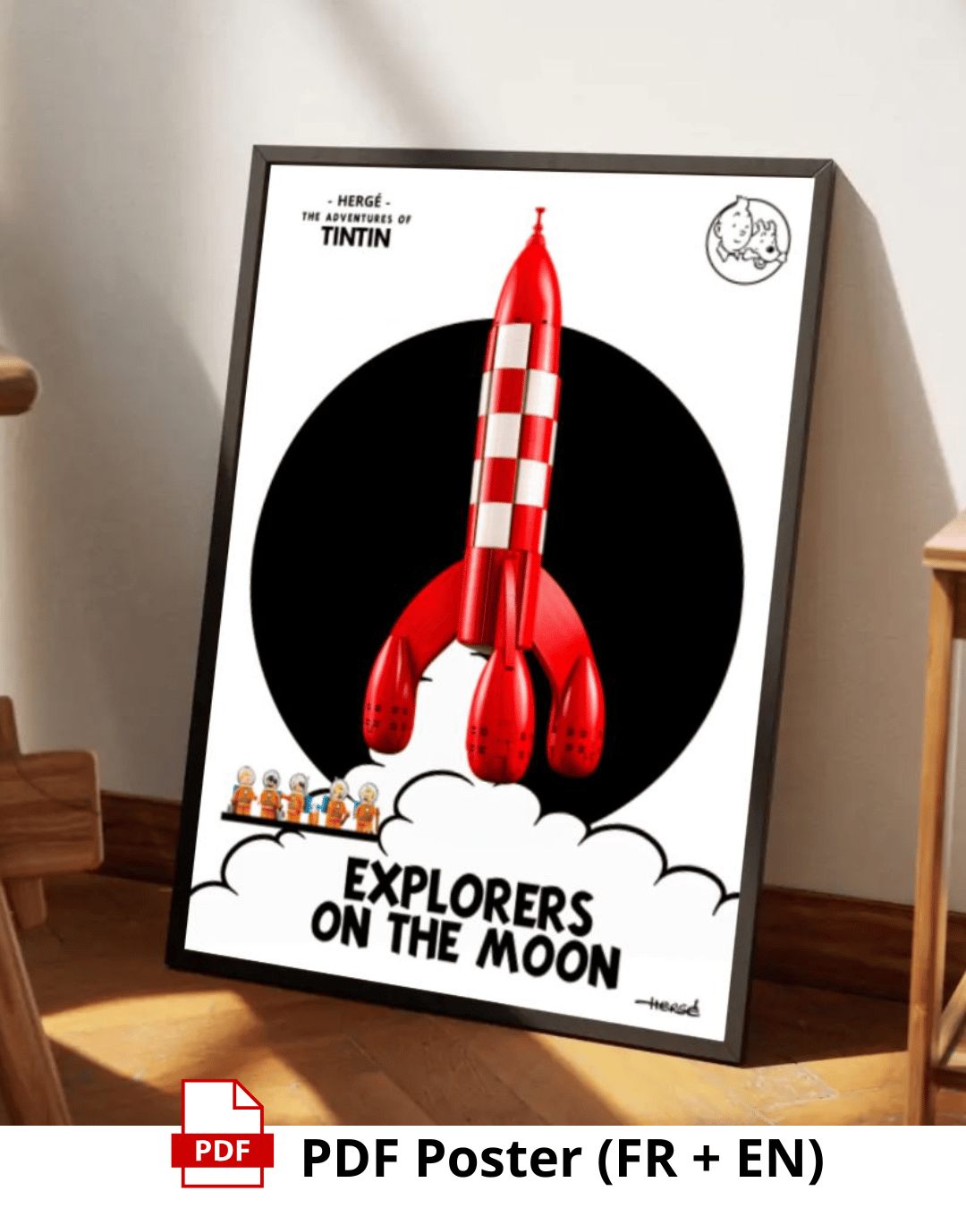 🇫🇷 TINTIN – AFFICHE ON A MARCHÉ SUR LA LUNE – 50 × 70 CM (19,7 × 27,6 POUCES) – COMPATIBLE DISPLAY FUSÉE LEGO® – TÉLÉCHARGEMENT DIGITAL (PDF)