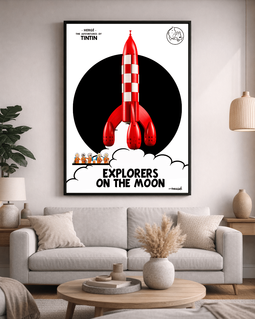 Digital poster compatible with LEGO® Tintin Rocket display, designed to enhance your setup with a clean and iconic design inspired by Explorers on the Moon.