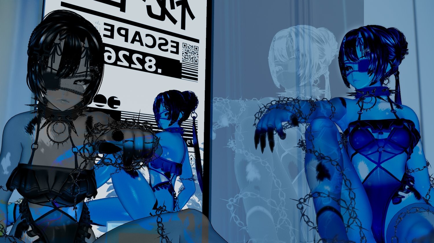 · Accessories: Arm and leg chains, blindfold, earrings, hair pins, hip metal pin, puppy collar, rings, stuffie goat, wings.