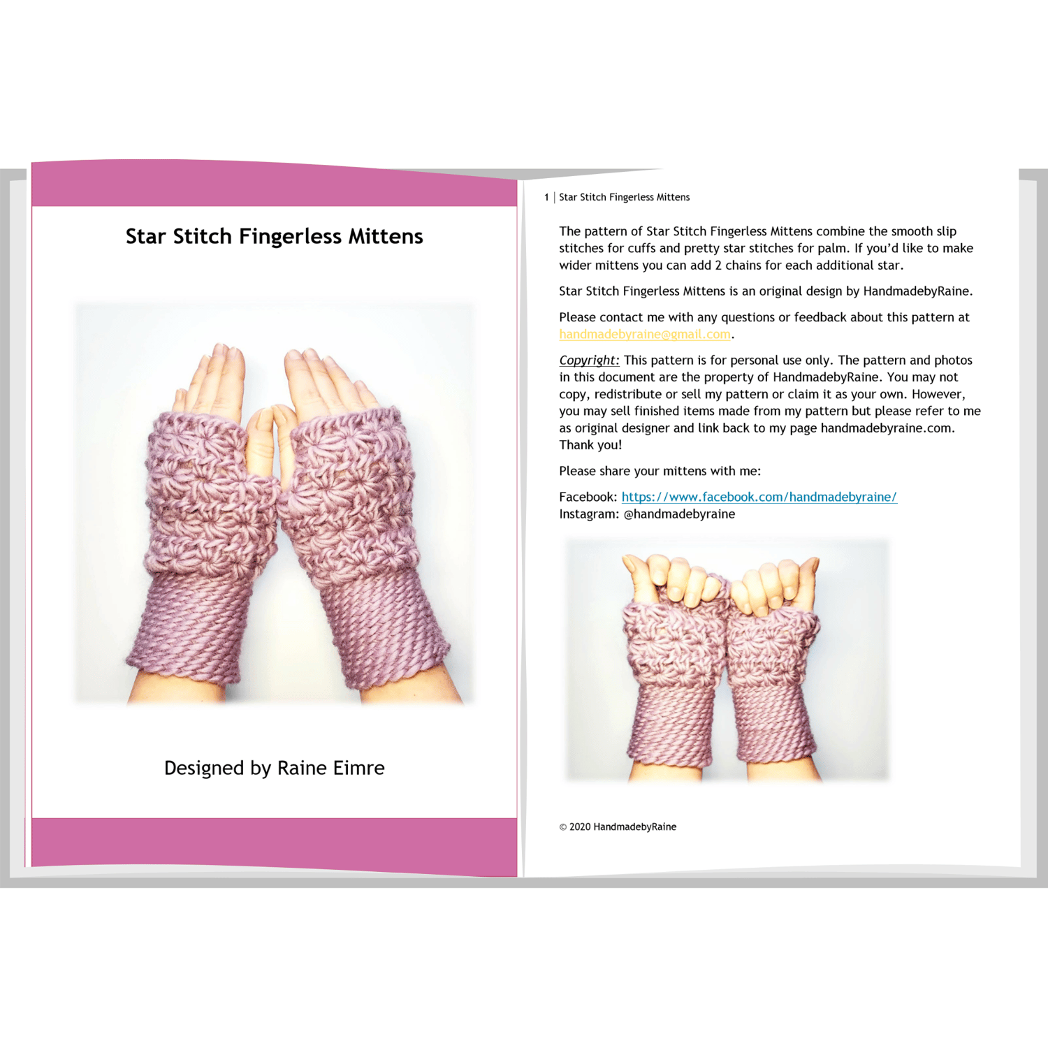 Star Stitch Fingerless Mittens PDF Crochet Pattern