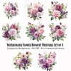 Set of 8 watercolour flower pink and purple bouquets printables.