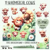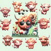 11 super cute whimsical Highland cows, background, grass overlay, sunglasses. 15 Transparent PNG files. Sublimation, print. Personalise. PNG