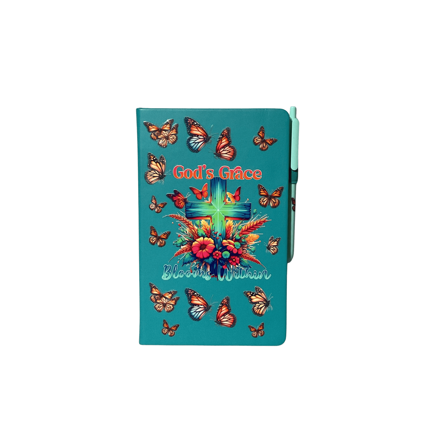 The “God’s Grace Blooms Within” bundle is a faith-filled reminder that growth, healing, and purpose start within. This coordinated journal and glass cup set features vibrant floral and butterfly artwork symbolizing renewal, grace, and transformation through Christ.