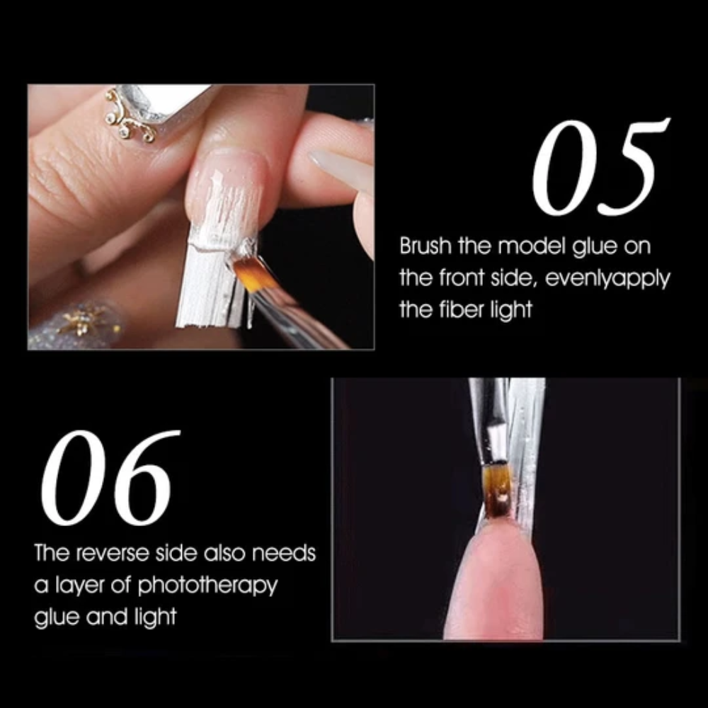 Fiberglass is a brand new tech that can change its form in just 1 minute, from ultra-light, soft material to flawless extended nails by simple curing.