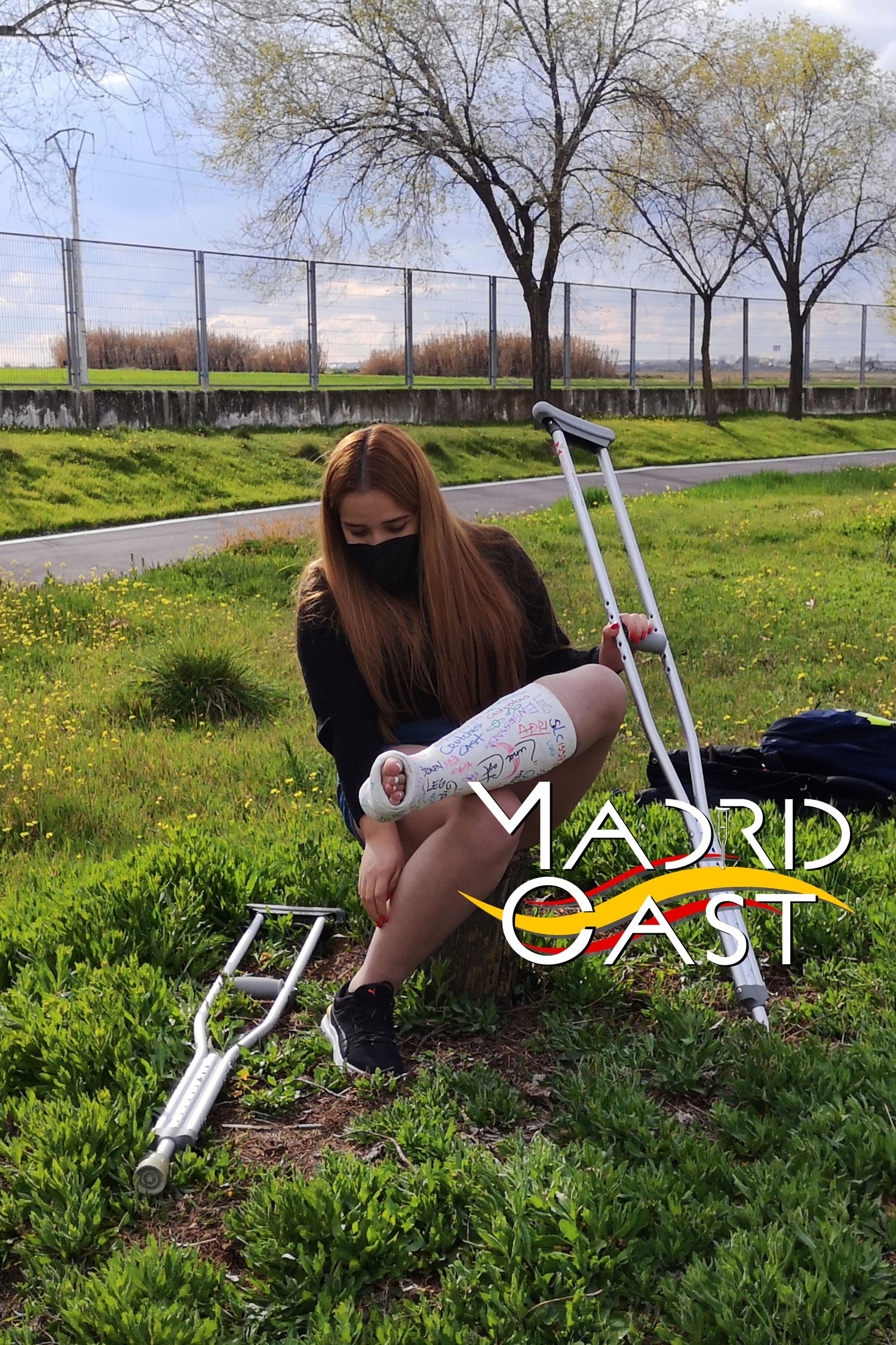 En este clip podemos ver a Luna con sus muletas, pero también muchos primeros planos de su pierna y limpiando sus dedos del pie enyesado, también debajo.