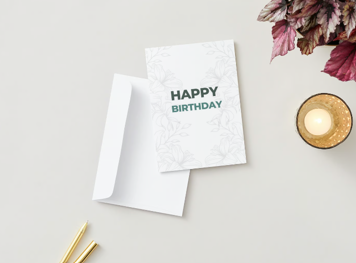Crafted with elegant details, this card is a refined and stylish choice for sending birthday wishes. With a blank interior, there is plenty of room to write a personalized message, allowing you to convey your heartfelt sentiments and best wishes to the recipient. Elevate their birthday celebration with our Elegant Birthday Card.