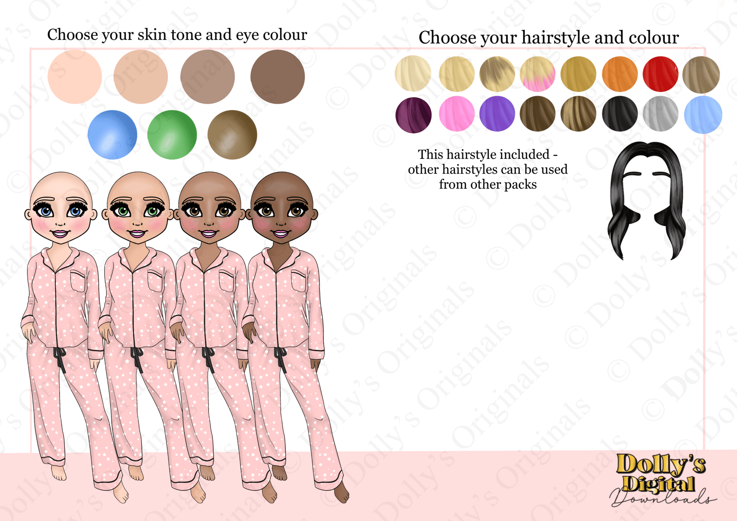 Instant digital download of our Pink Stars Christmas Pyjamas Dolly Character Bundle PNG (32 PNG’s)