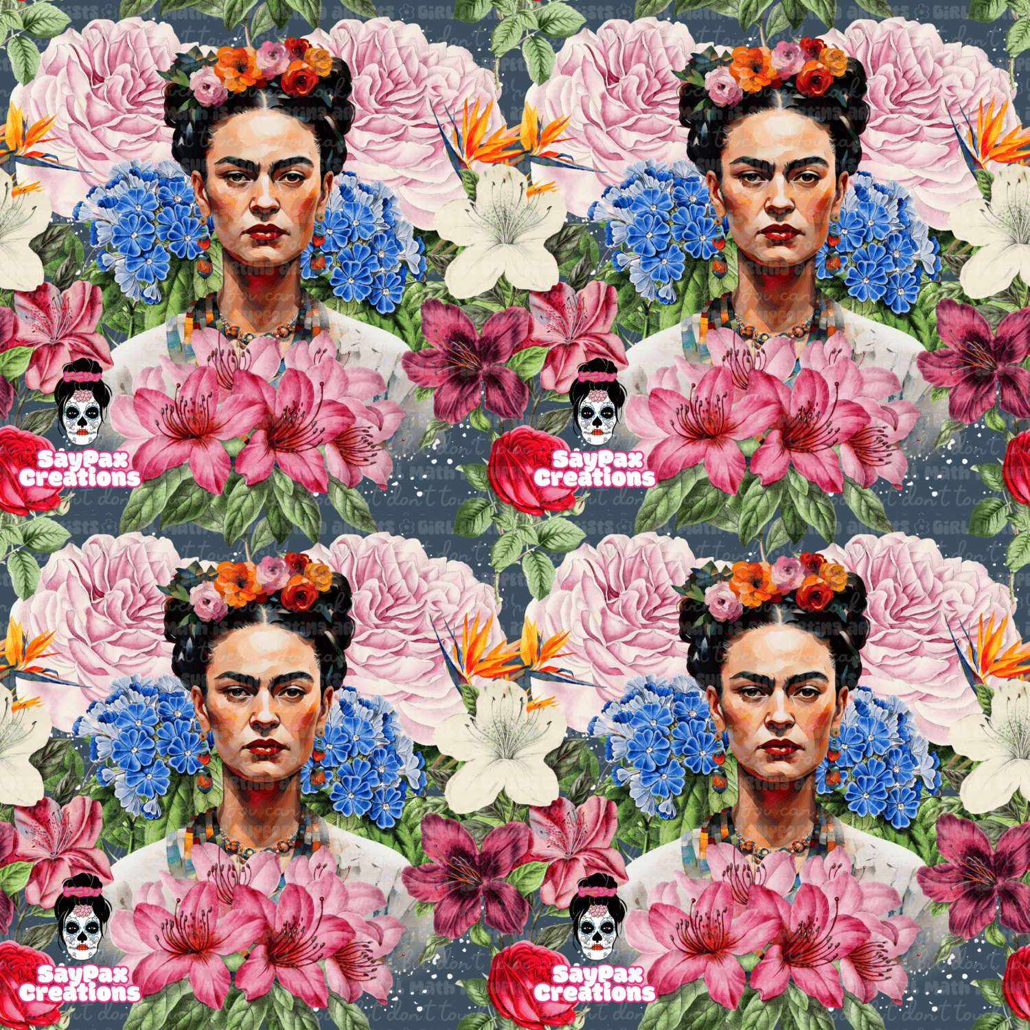Frida on blue floral