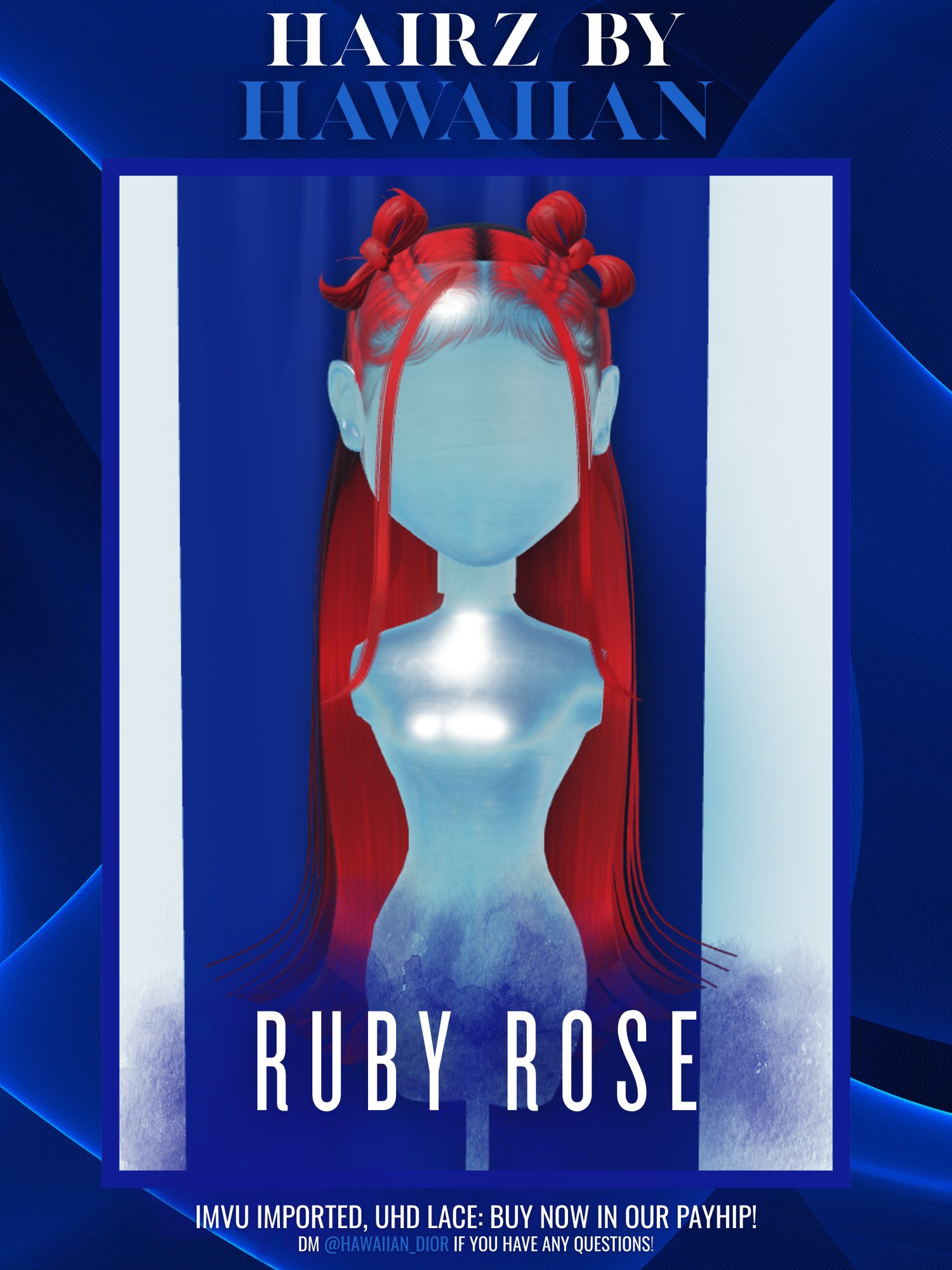 Custom-crafted wigs, designed in Blender and imported from IMVU — each piece is uniquely made with love and care.