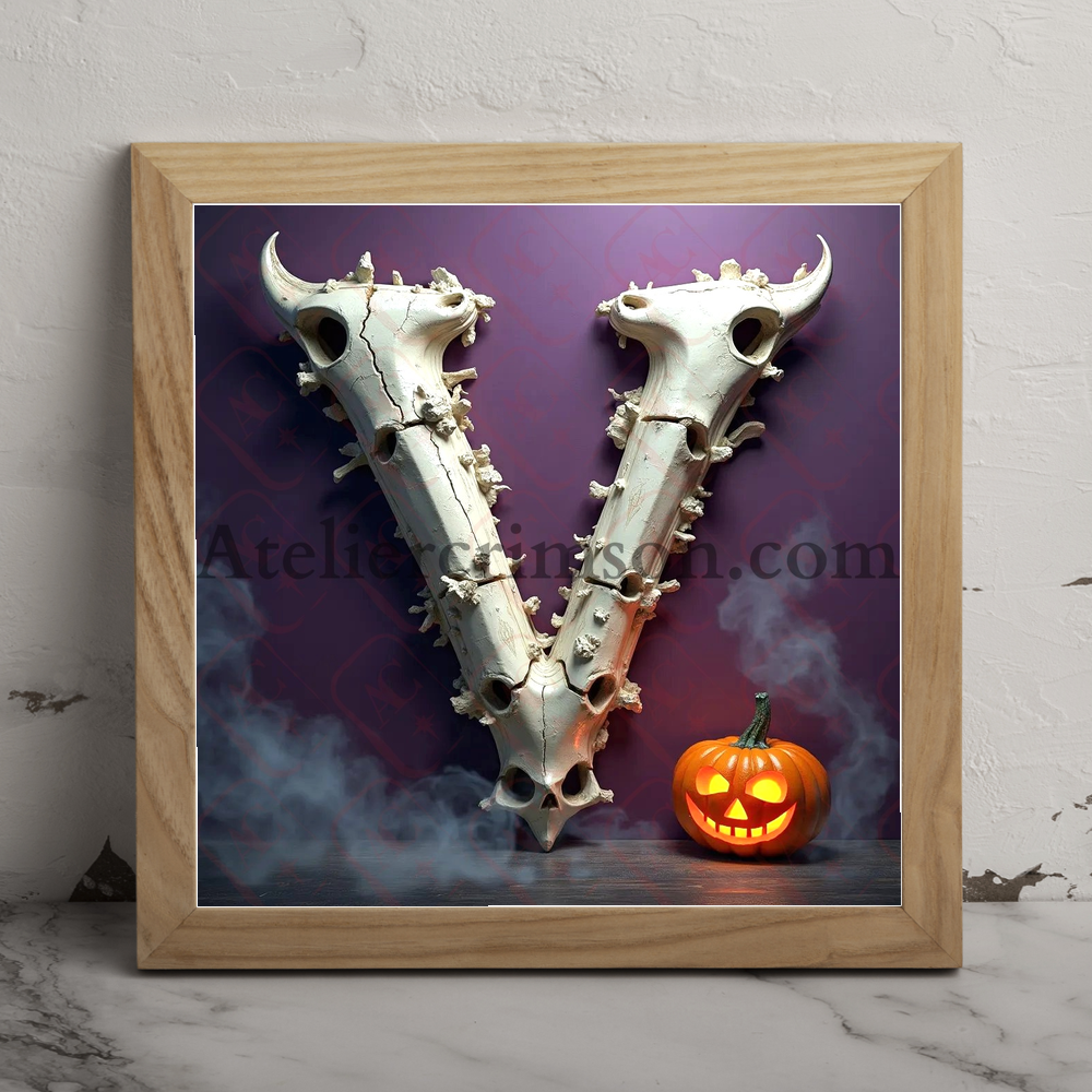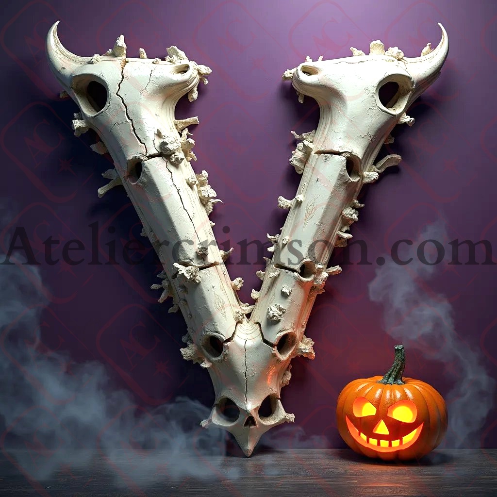 The letter V spooky character skull Halloween Discover our Spooky Skull Alphabet! Each character is a 3D masterpiece of bone and shadow. Perfect for Halloween designs, gothic projects, or unique wall art. 💀✨ Click to download this high-resolution character and elevate your creations with haunting elegance!