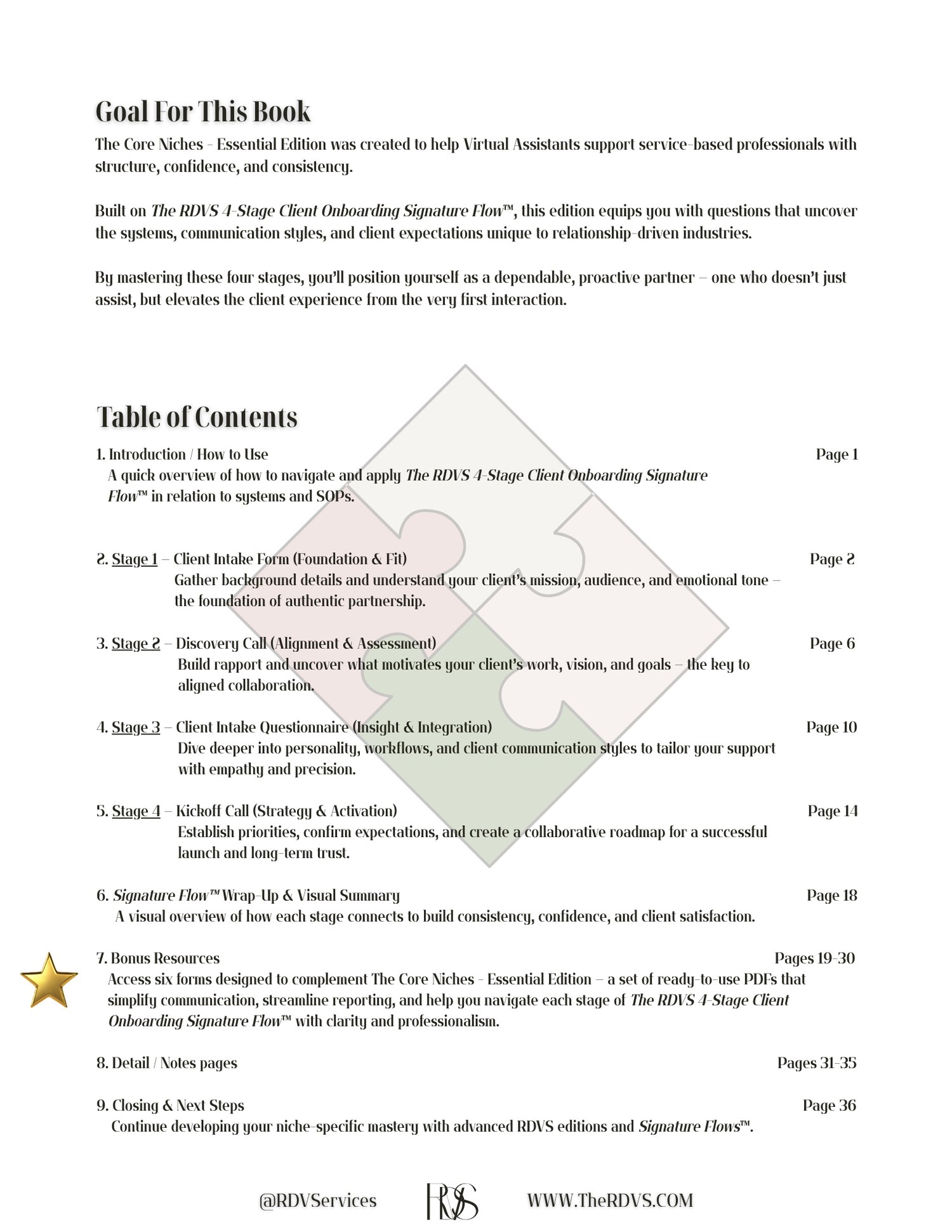 Built on The RDVS 4-Stage Client Onboarding Signature Flow™, each stage moves you from discovery to activation — transforming your onboarding from reactive to refined.