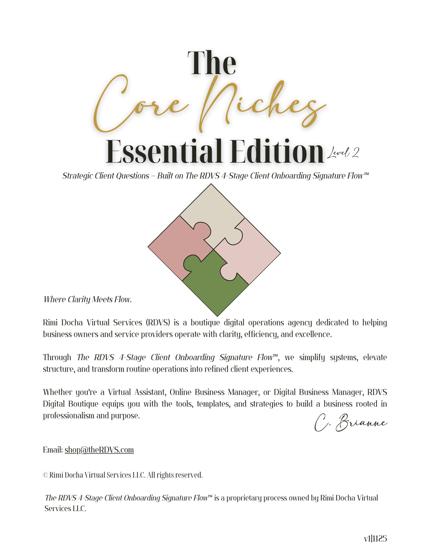 The Core Niches — Essential Edition — Specialized Industry Questions Built on The RDVS 4-Stage Client Onboarding Signature Flow™