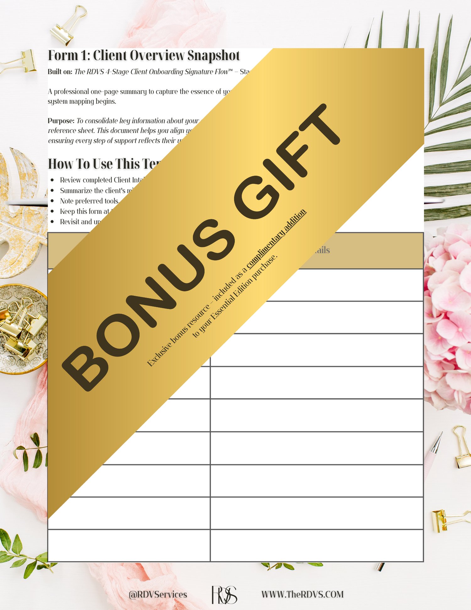 Your purchase also includes seven exclusive client management templates and tools to elevate your operations and streamline every stage of support: