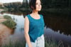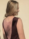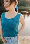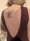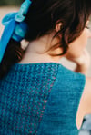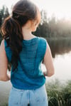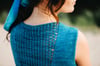 A light, sensual top for your summer vacations. With a lace panel on the back and clean, rounded lines, this top — made in luxurious Malabrigo yarn — will be your staple garment for evenings out, as well as for cooler days to wear under the jacket. A round, unfinished neckline gives the top a carefree vacation mood.