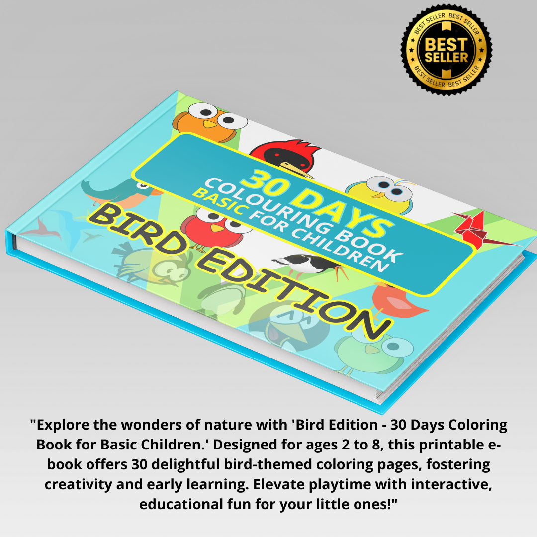 Introducing "Bird Edition - 30 Days Coloring Book for Basic Children," a delightful and educational printable e-book tailored for children aged 2 to 8 years.