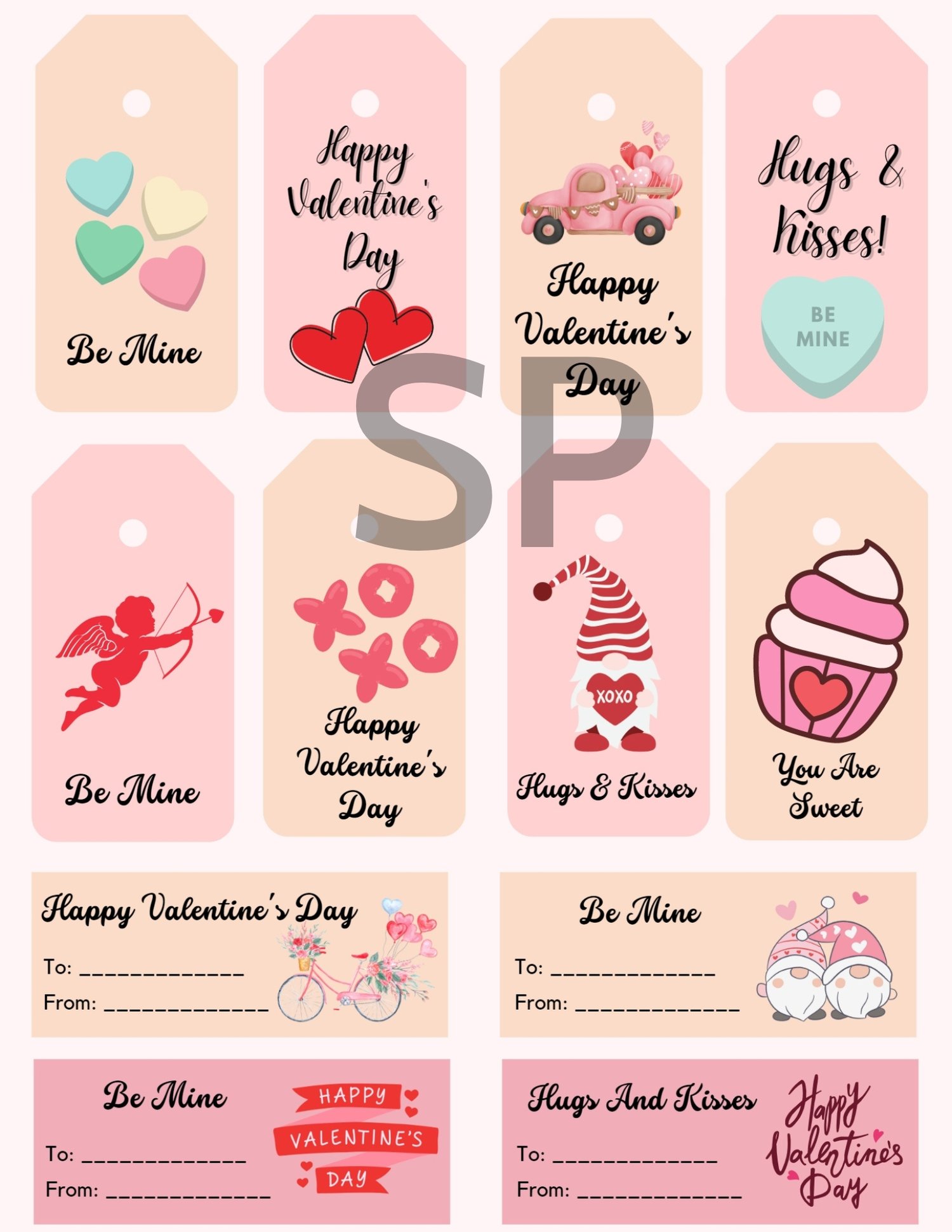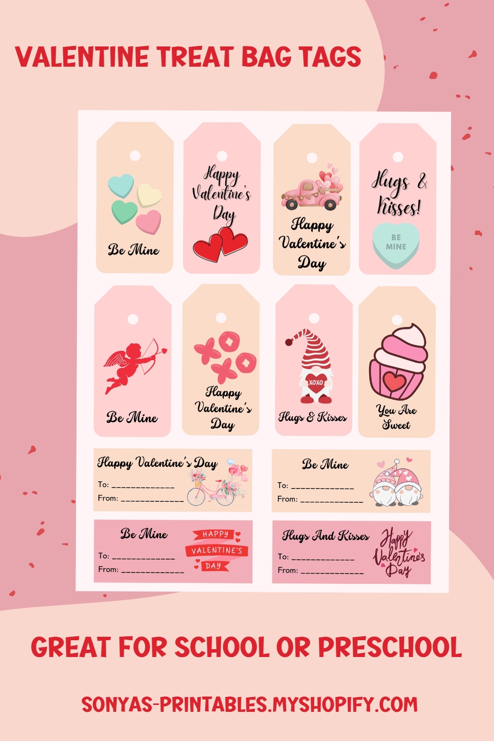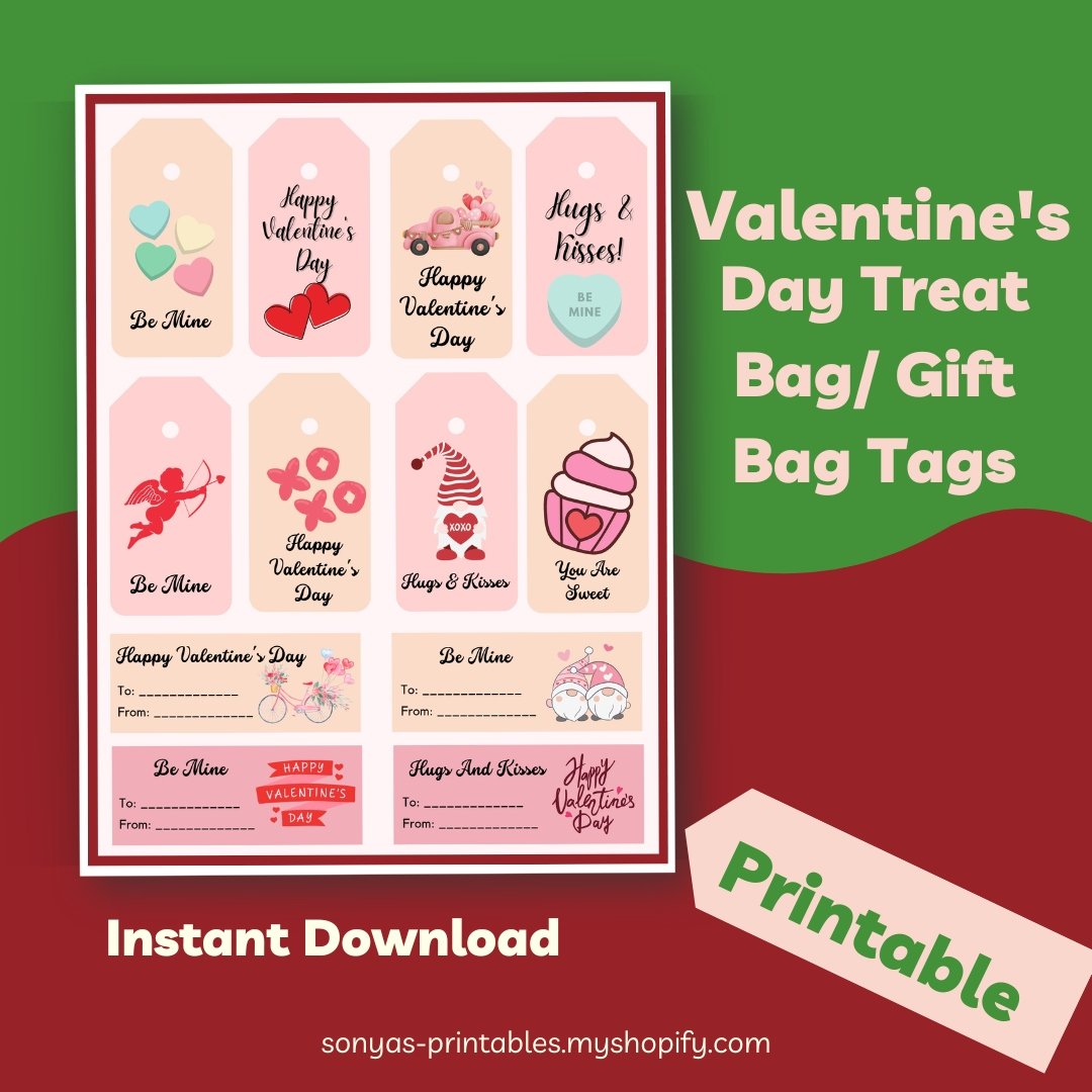 Valentine's Gift Bag Tags | Cute Valentine Treat Bag Tags | Valentine Goodie Bag Tags | Valentine Favor Bag Tags