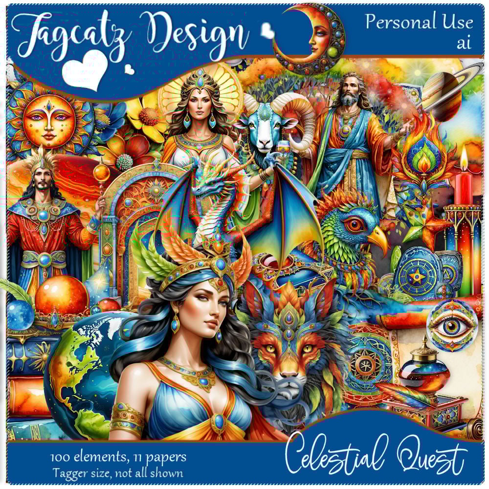 The sky gods feast, fight and travel the planets all for celestial fun. 100 elements and 11 matching papers. AI generated. Tagger size. Not all shown. Personal use only.