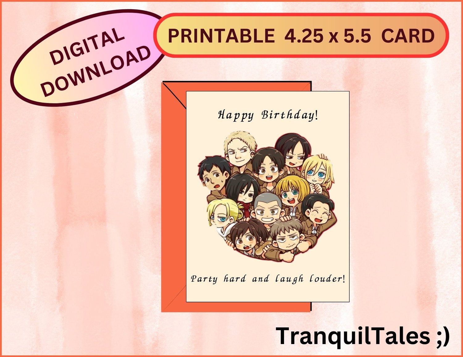 BIRTHDAY CARD - ATTACK ON TITAN - 4.25" x 5.5" PDF - PRINTABLE GREETING - DIGITAL DOWNLOAD