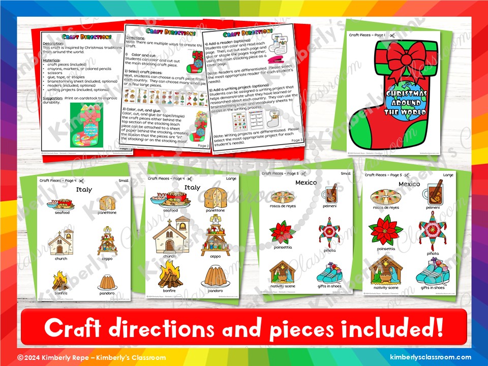 ❤️Your students will love learning how seven countries celebrate Christmas in unique ways, while making beautiful Christmas stocking crafts! Add a holiday reader or writing project for extra learning!