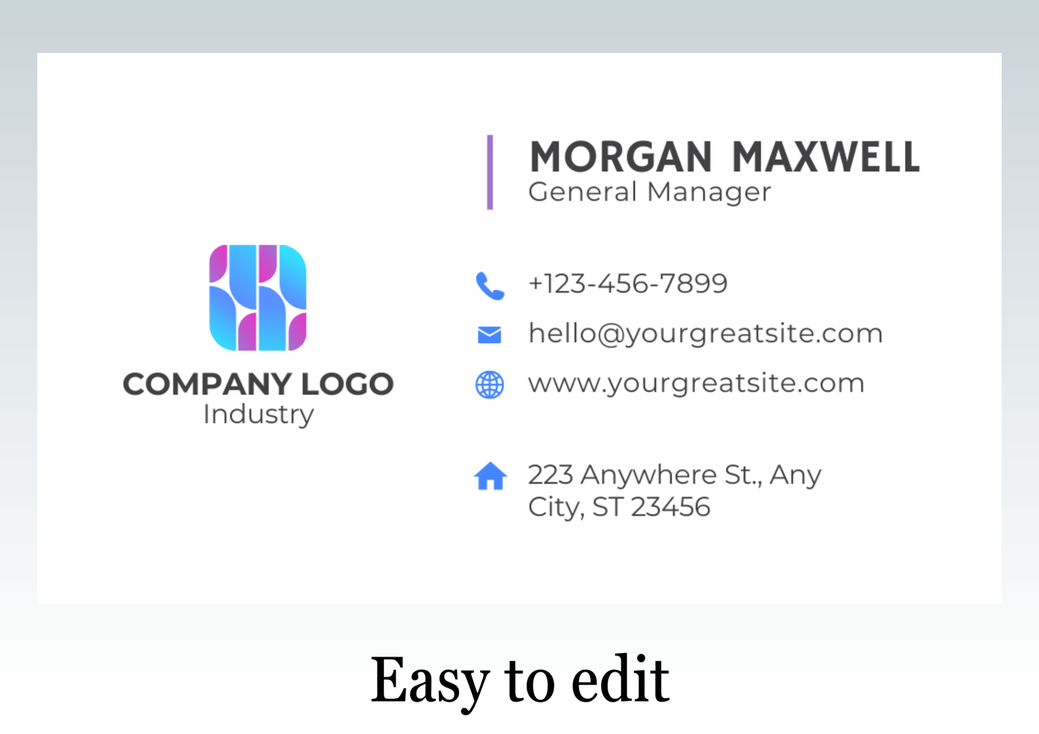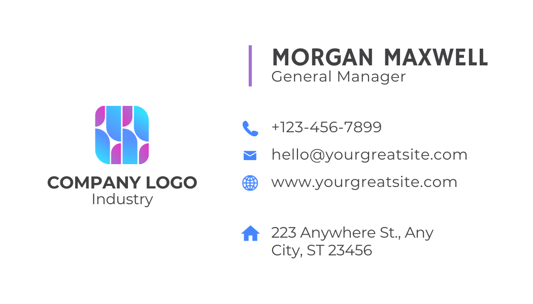 Introducing; The "simple blue and purple abstract business card"! This elegant and stylish business card is perfect for industrial, retail, or any other business looking for a modern, minimalist design. With a customizable logo and two unique reverse company detail templates, this business card will make a lasting impression. So download today and start standing out from other companies by promoting your business with this modern and stylish business card!