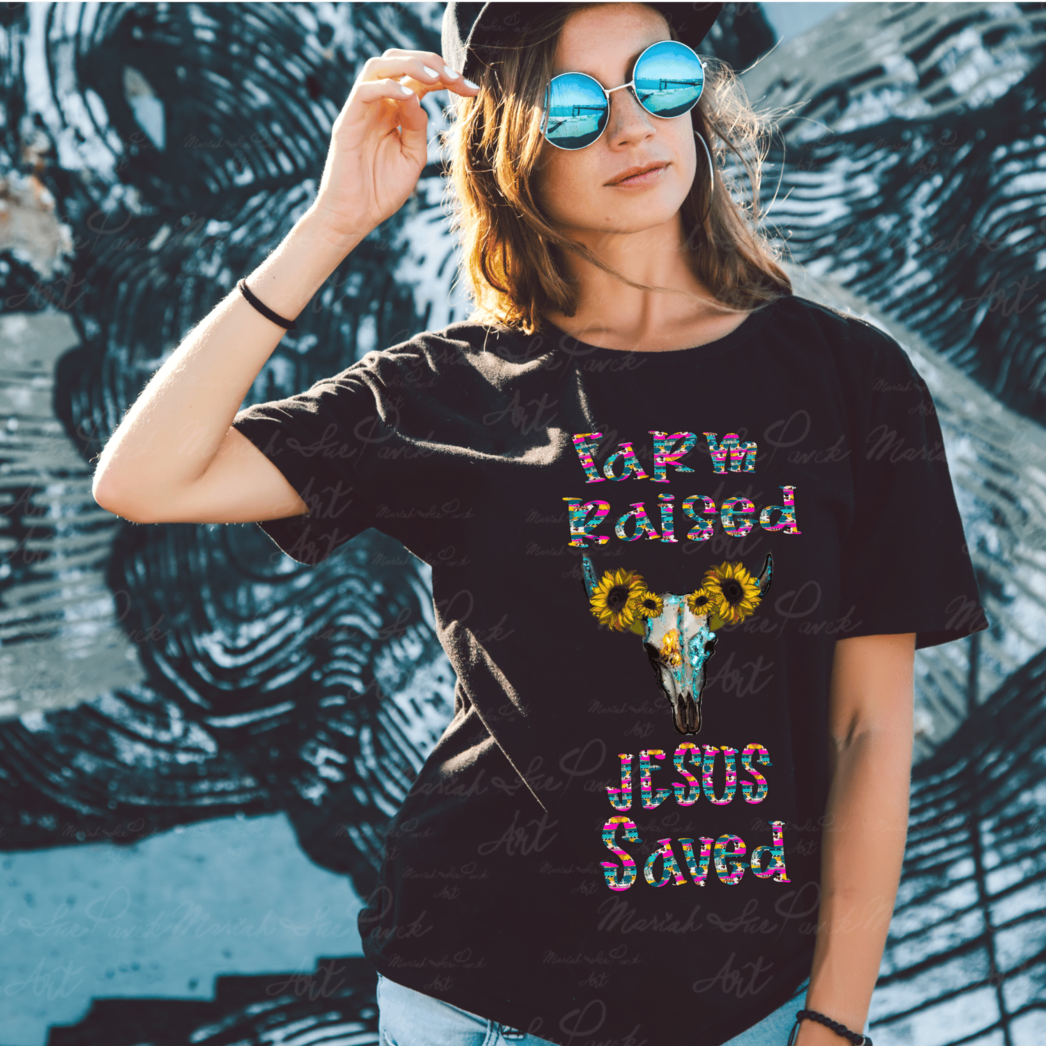 Farm Raised Jesus Saved Western Mash PNG