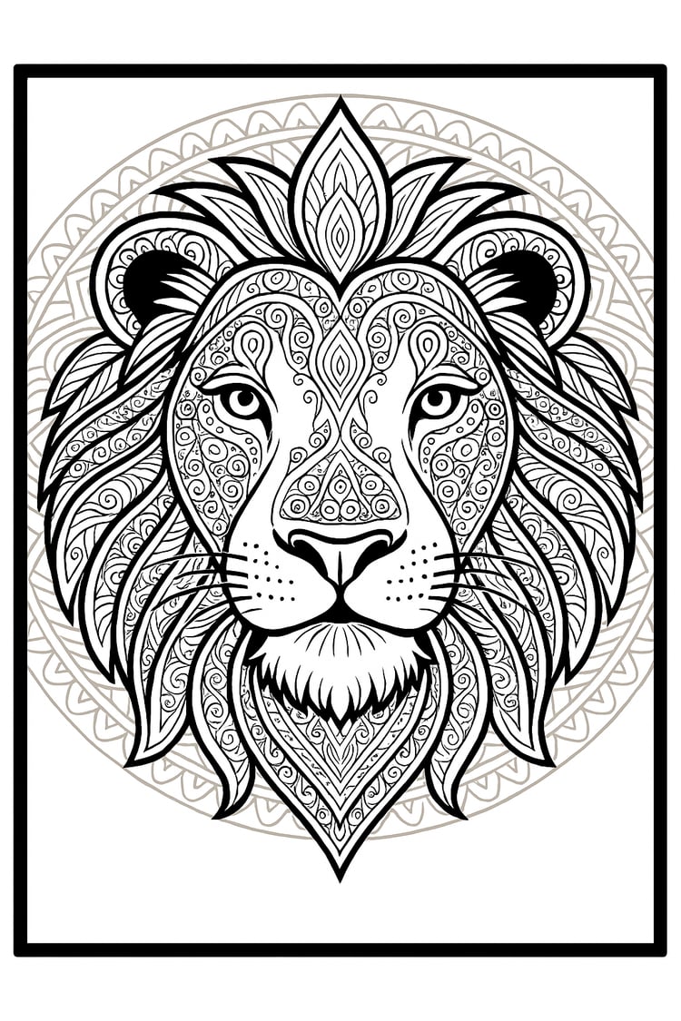 - 🦁 Detailed lion illustration with mandala-style mane