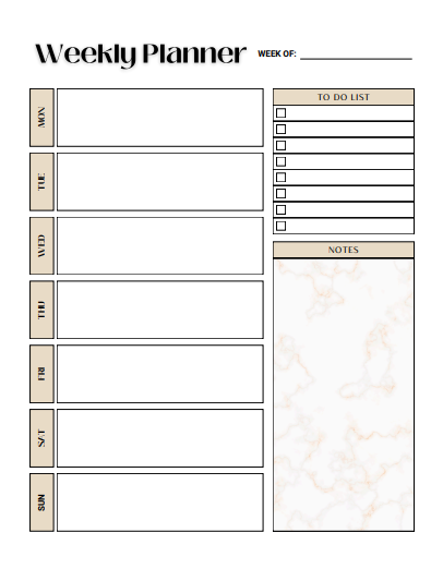 - Daily and Weekly Planning Sheets for structure, time management, and staying on track.