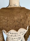 14 stitches and 40 rows to 10cm / 4 ins measured over stocking stitch. 18 stitches and 30 rows to 10cm / 4 ins measured over lace pattern. Measurements taken after quite aggressive vertical wet blocking.