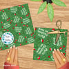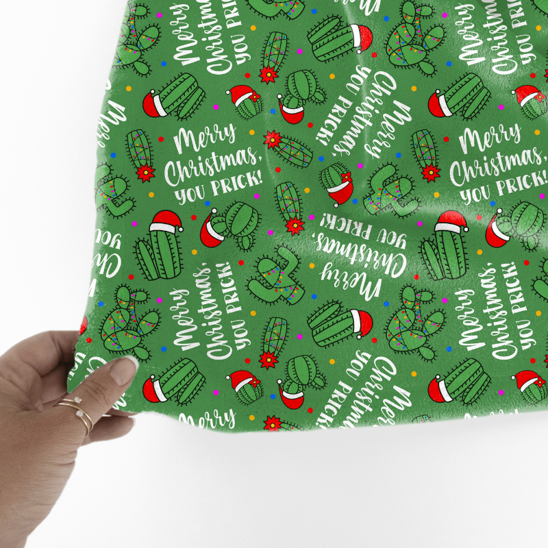 A sarcastic and sweary Christmas message! Don't be a prick, it's Christmas! Holiday cacti with Santa hats on green.