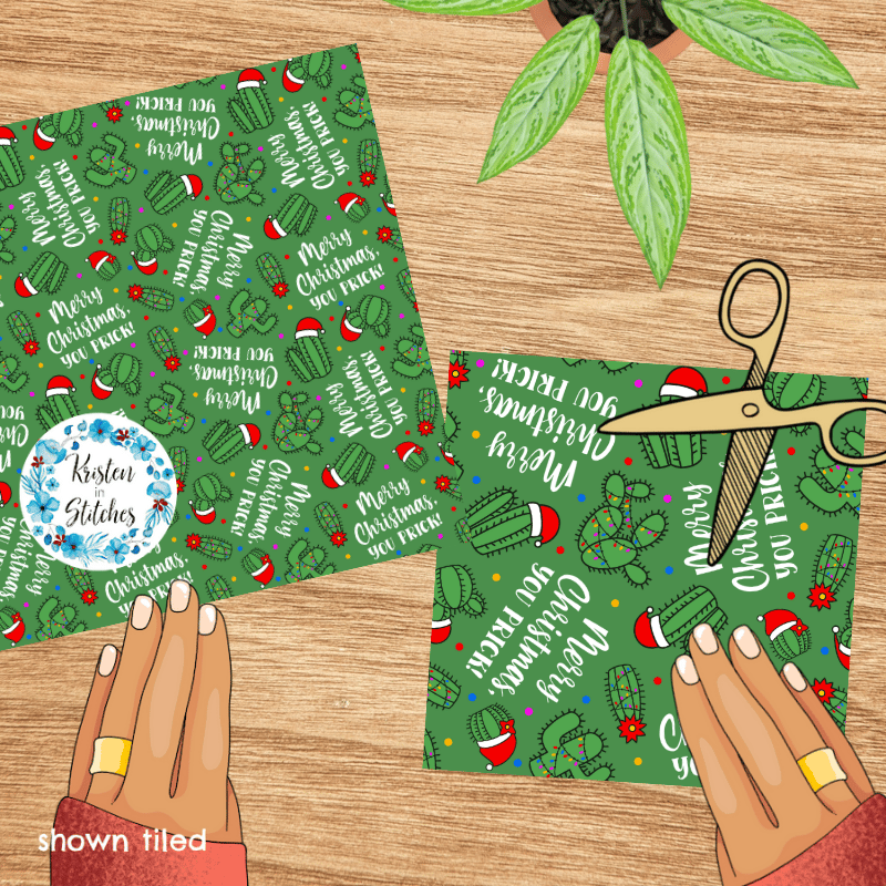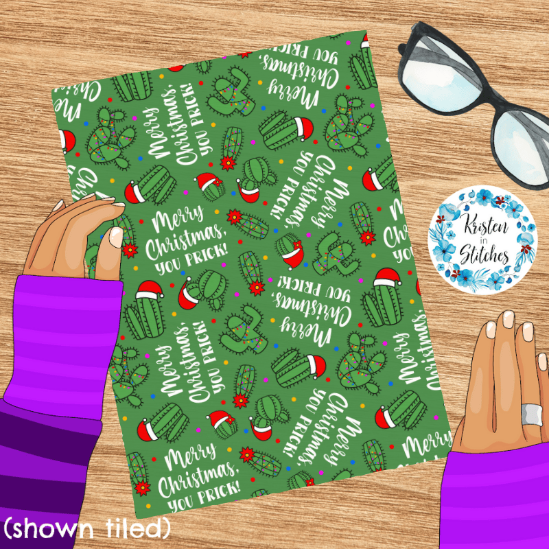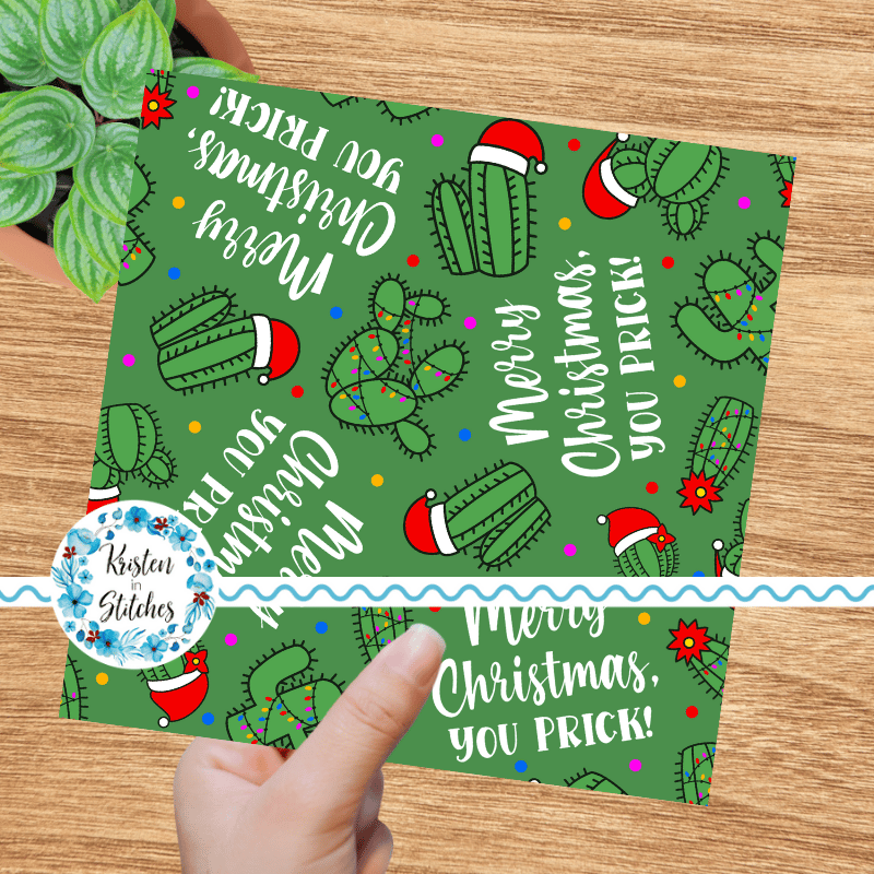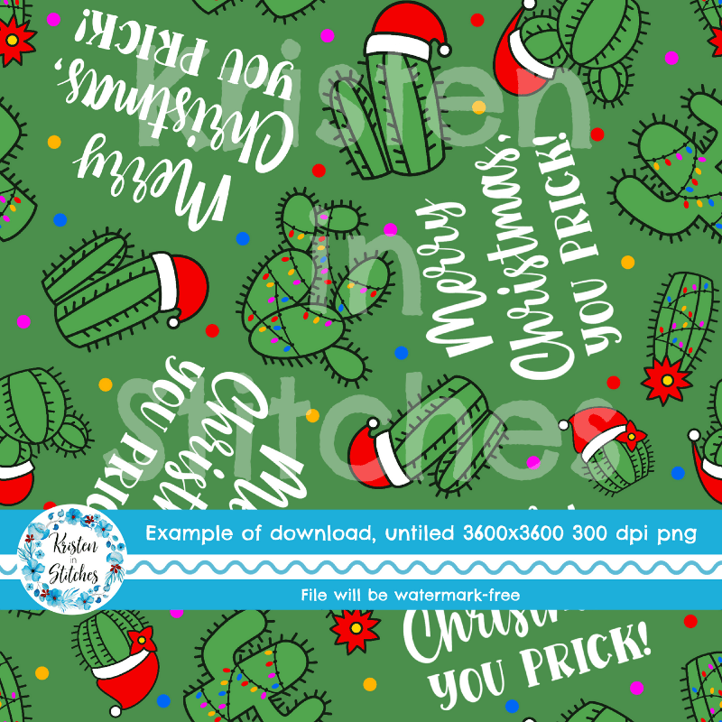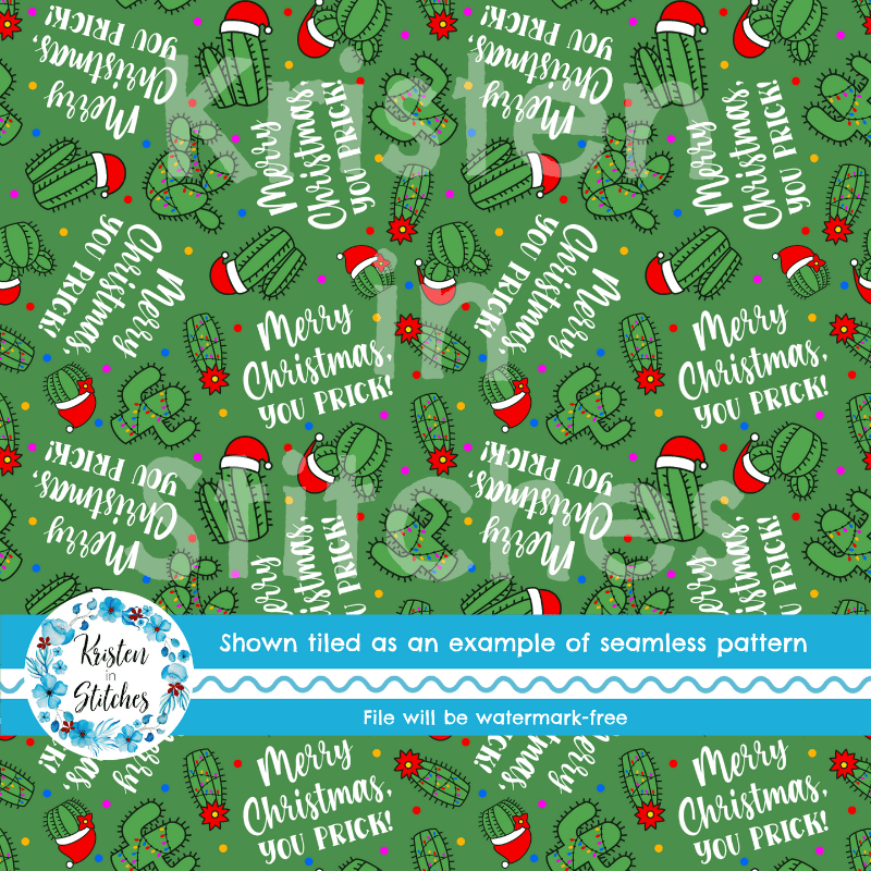 Merry Christmas, You Prick! Seamless Pattern Green Cactus Santa Hats