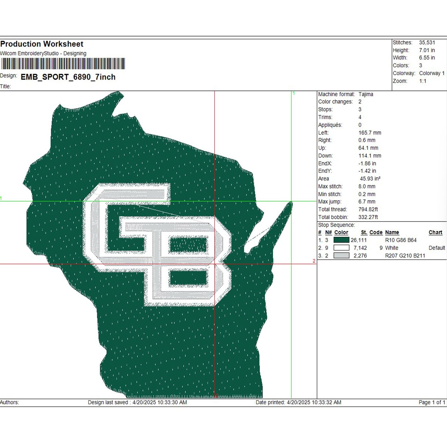 Green Bay Phoenix Map Logo Embroidery Design Files, NCAA Green Bay Phoenix Machine Embroidery Designs, NCAA Logo embroidery designs, Ncaa Phoenix Logo, Digital Download