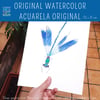 Original watercolor - Blue dragonfly