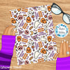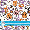 Sassy Halloween witch theme with hats, poison apples, otions, pumpkins, ghosts and skulls.