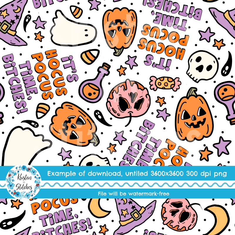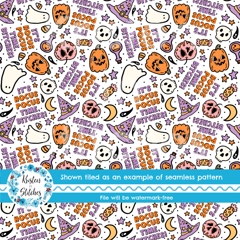 It's Hocus Pocus Time Bitches Sweary Sarcastic Halloween Witch Seamless Pattern