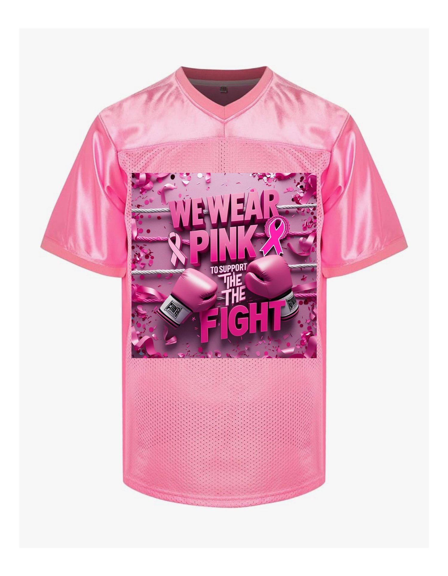 Show your support for Breast Cancer Awareness with a pink jersey. Available plain or customize with a design of your choosing. Don’t have a design? Choose from one of our ready for you designs. Jersey is available in Men size S - 3XL