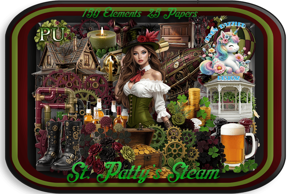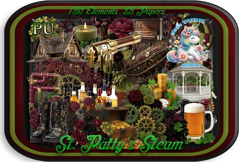 This beautiful new scrap kit is a matched to Vintage Steampunk by ViNina. The colors are olive green, black and burgandy.