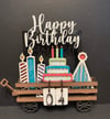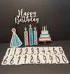 Happy Birthday Set for interchangeable Wagon includes Happy Birthday Sign with frame, 3Tier Birthday cake in all the colors, party hat,, 3 candles , and a double set of numbers to cover all Ages.