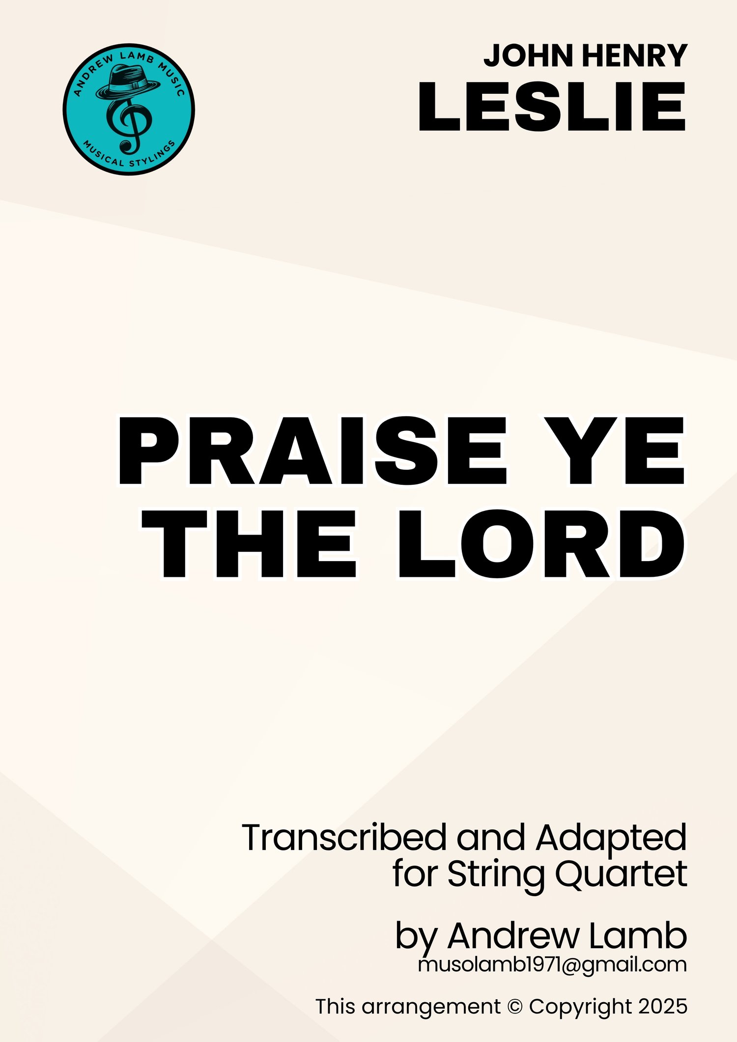 Bring the radiant energy of John Leslie’s Praise Ye the Lord to your next performance with this expressive arrangement for string quartet. Scored for 2 Violins, Viola (or optional Violin III), and Cello, this setting preserves the joyful character of the original while offering clear, balanced lines for confident ensemble playing.