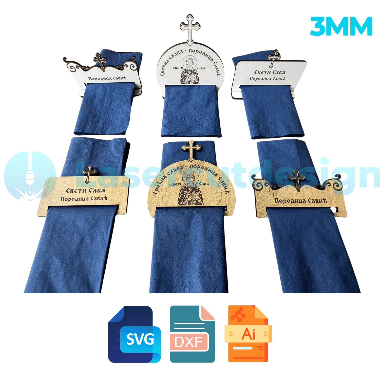 Napkin Holder - Drzaci Za Salvete Laser Cut Files Orthodox Slava Decoration 3mm SVG DXF AI Templates