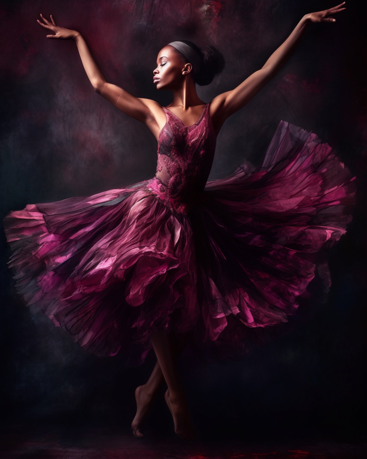 Ebony En Point African American Ballerinas: Step into a world of elegance and grace with our collection of four exquisite African American ballerinas represented in upscaled images. These remarkable dancers embody beauty in motion, each image exudes the feeling of artistry and skill in motion.