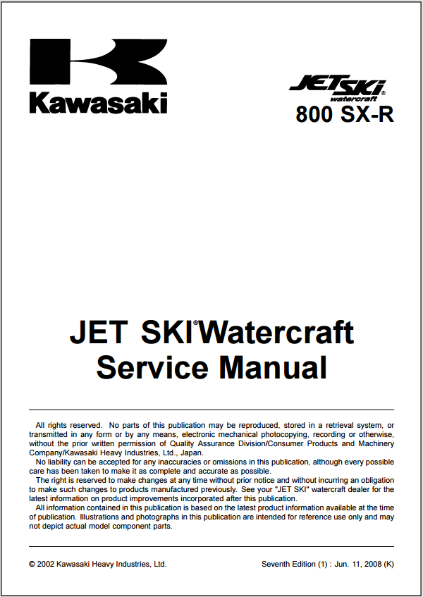 2003-2009 Kawasaki 800 SX-R Jet Ski Watercraft Service Manual Part No. 99924-1314-07 .pdf download